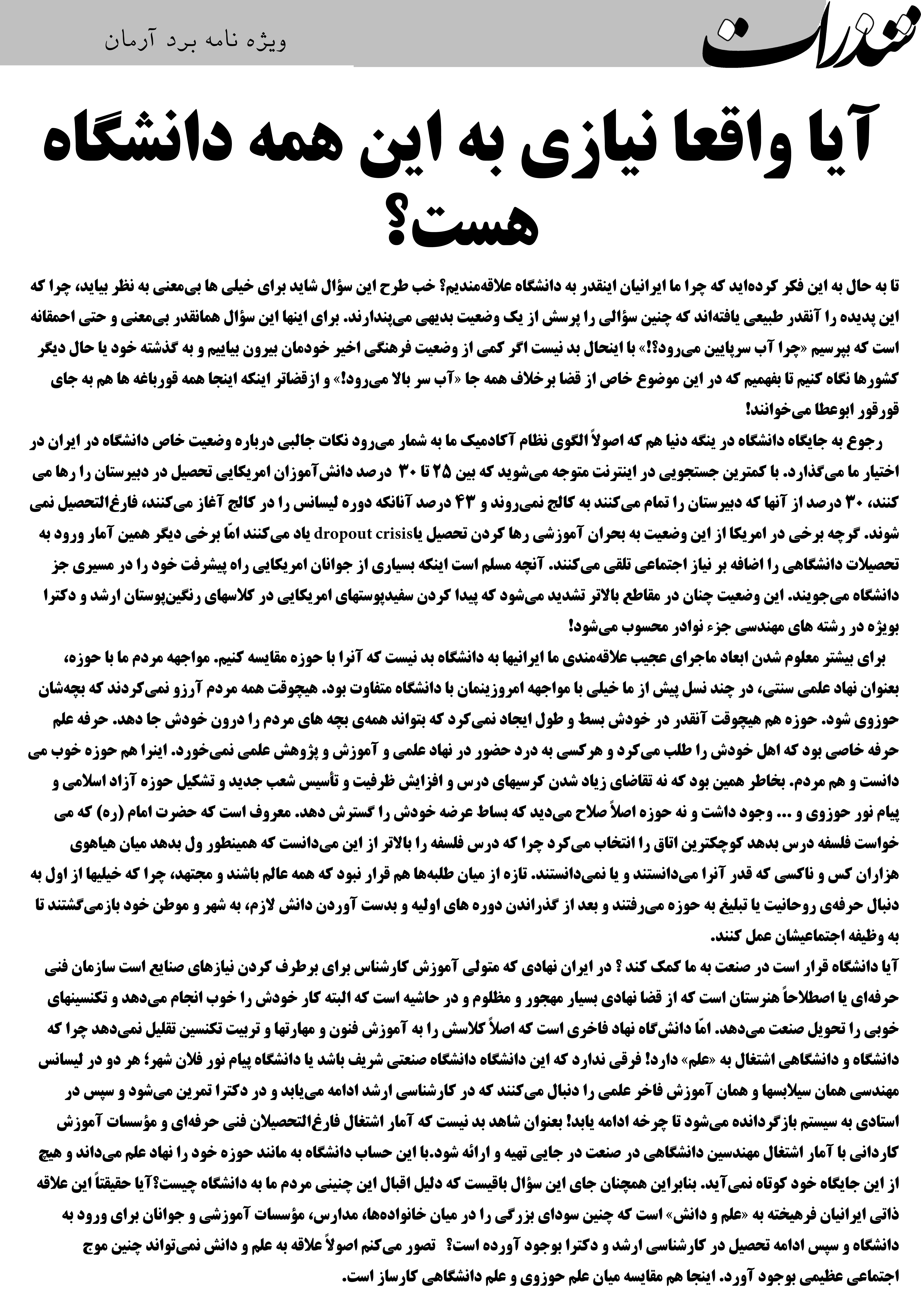به دلیل همین ملاک های متفاوت، بعضا ممکن است نگاه ما به دانشگاه و وضعیت آن متفاوت باشد.